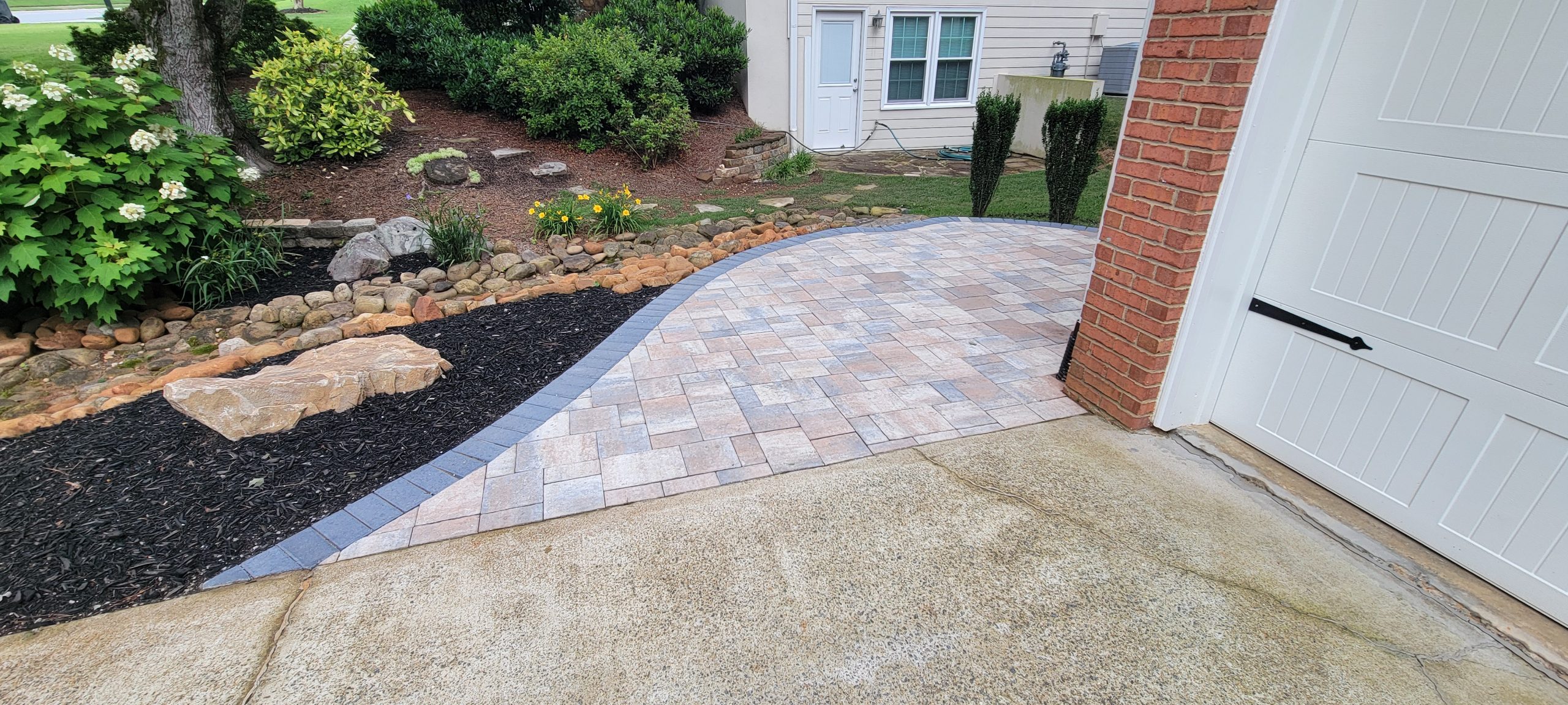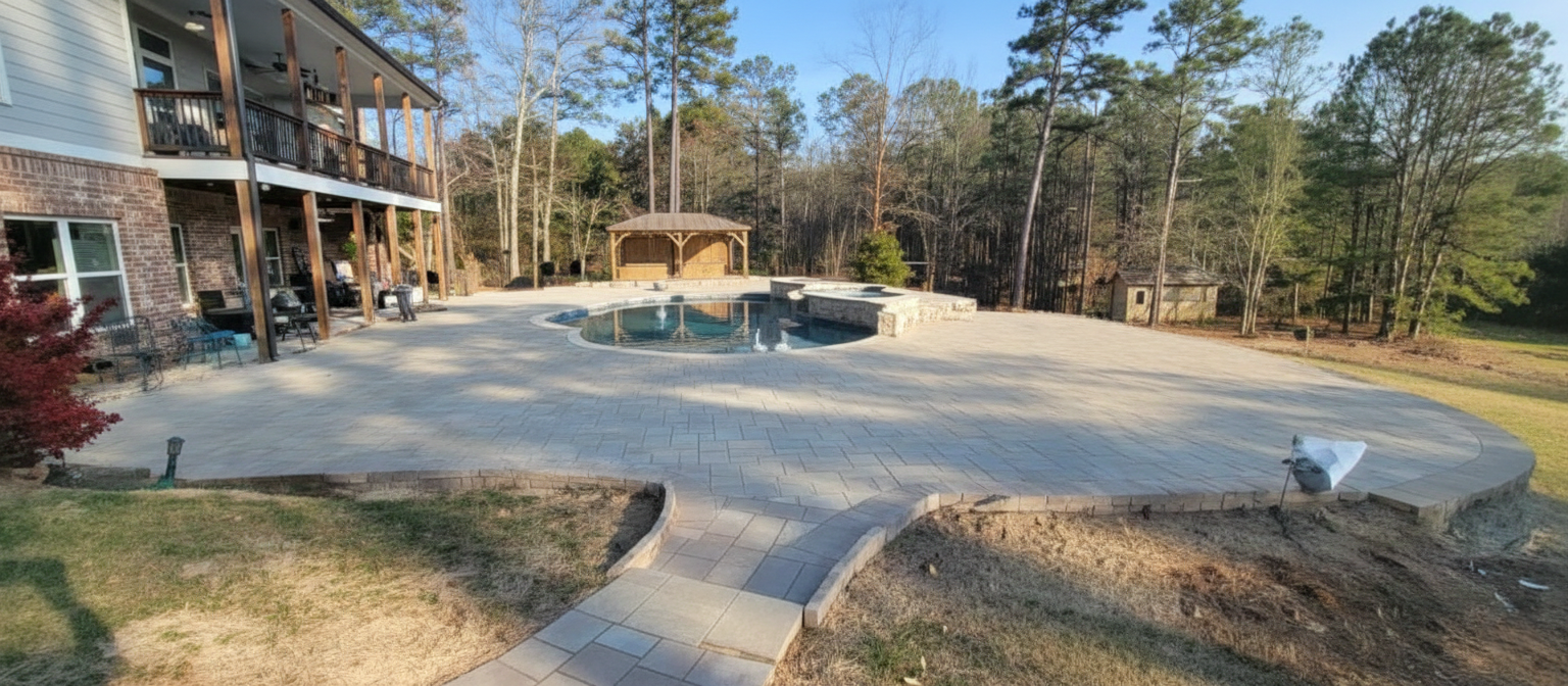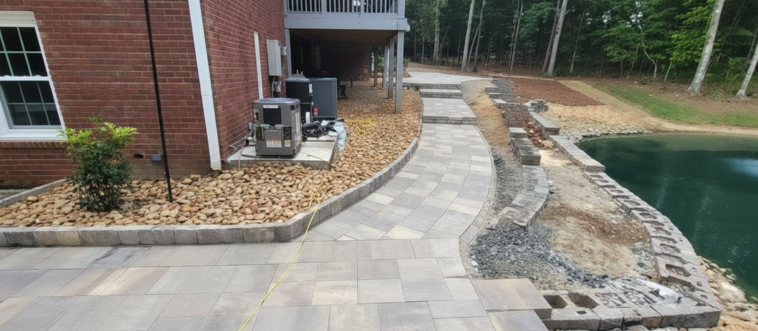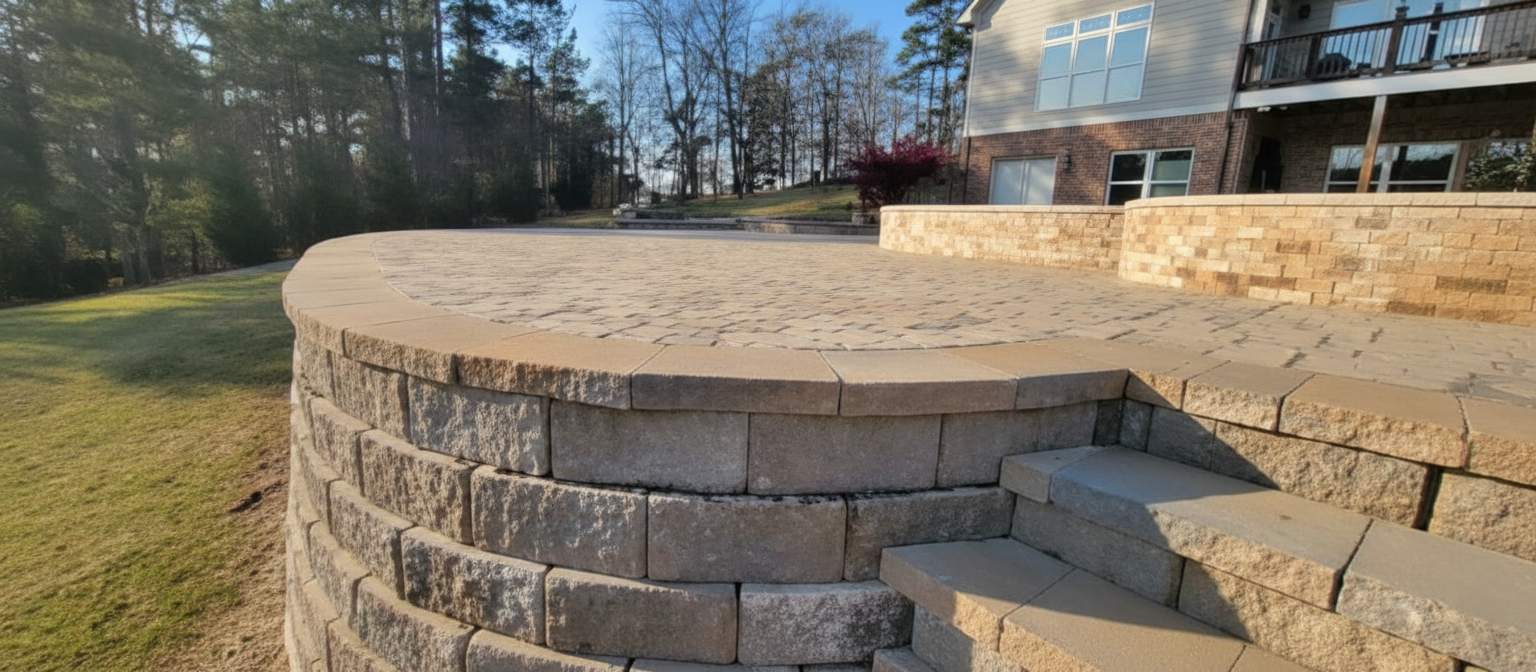 Paver patios, retaining walls, and stone features.