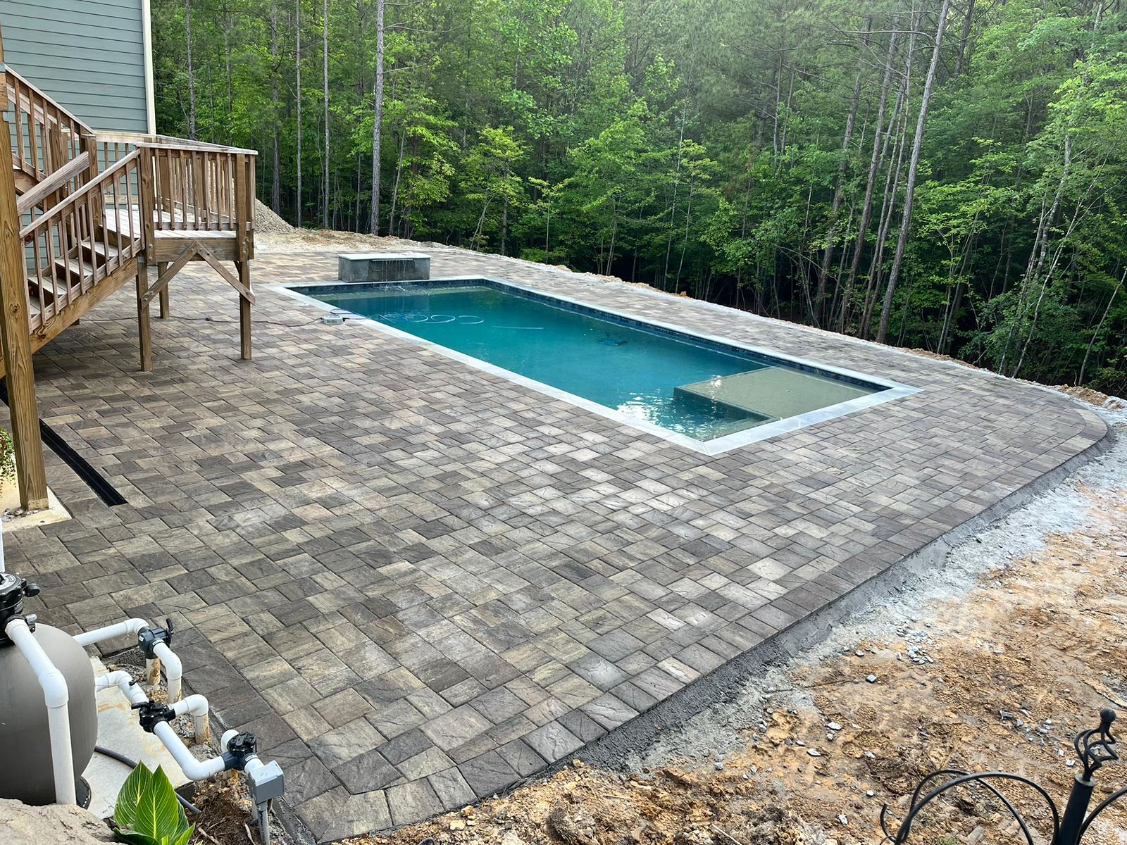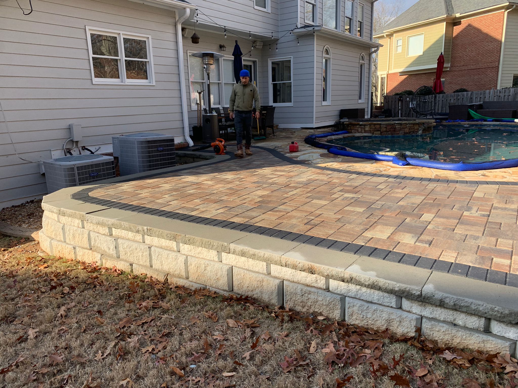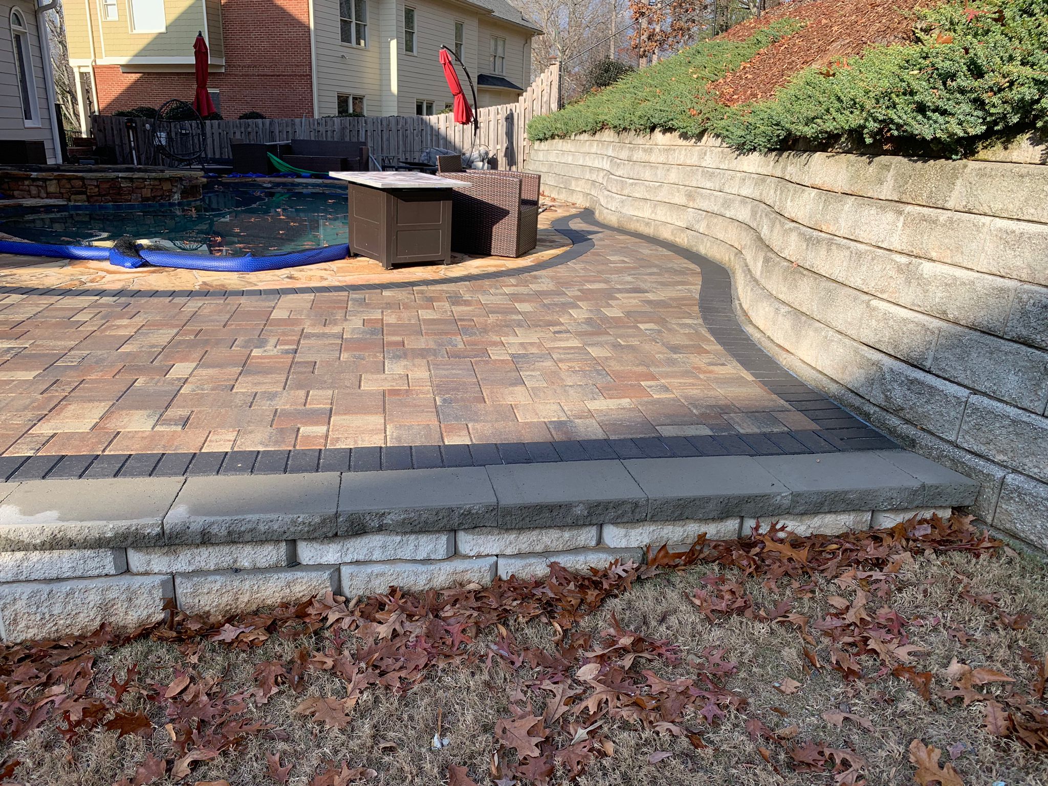 Paver patios, retaining walls, and stone features.